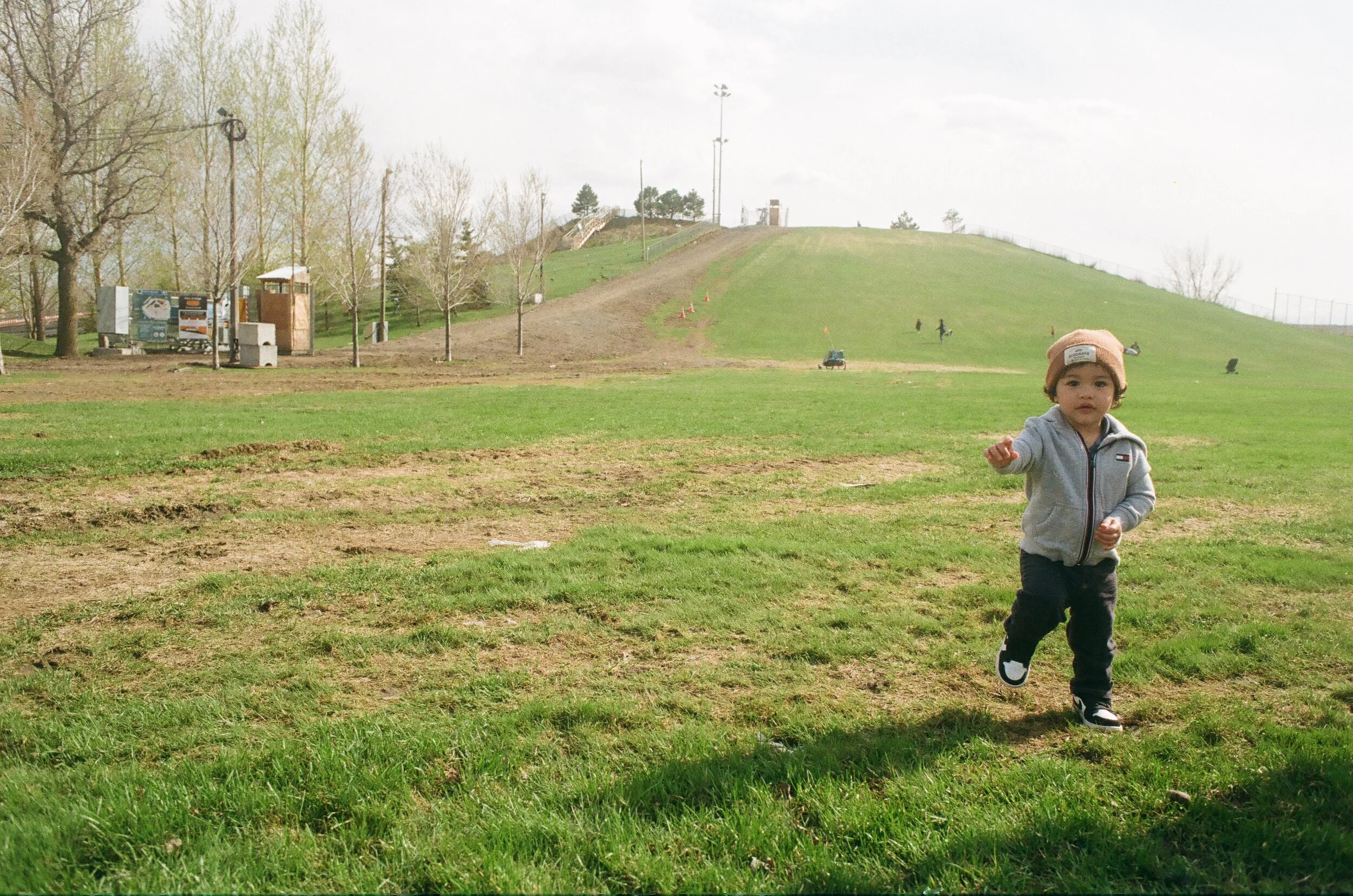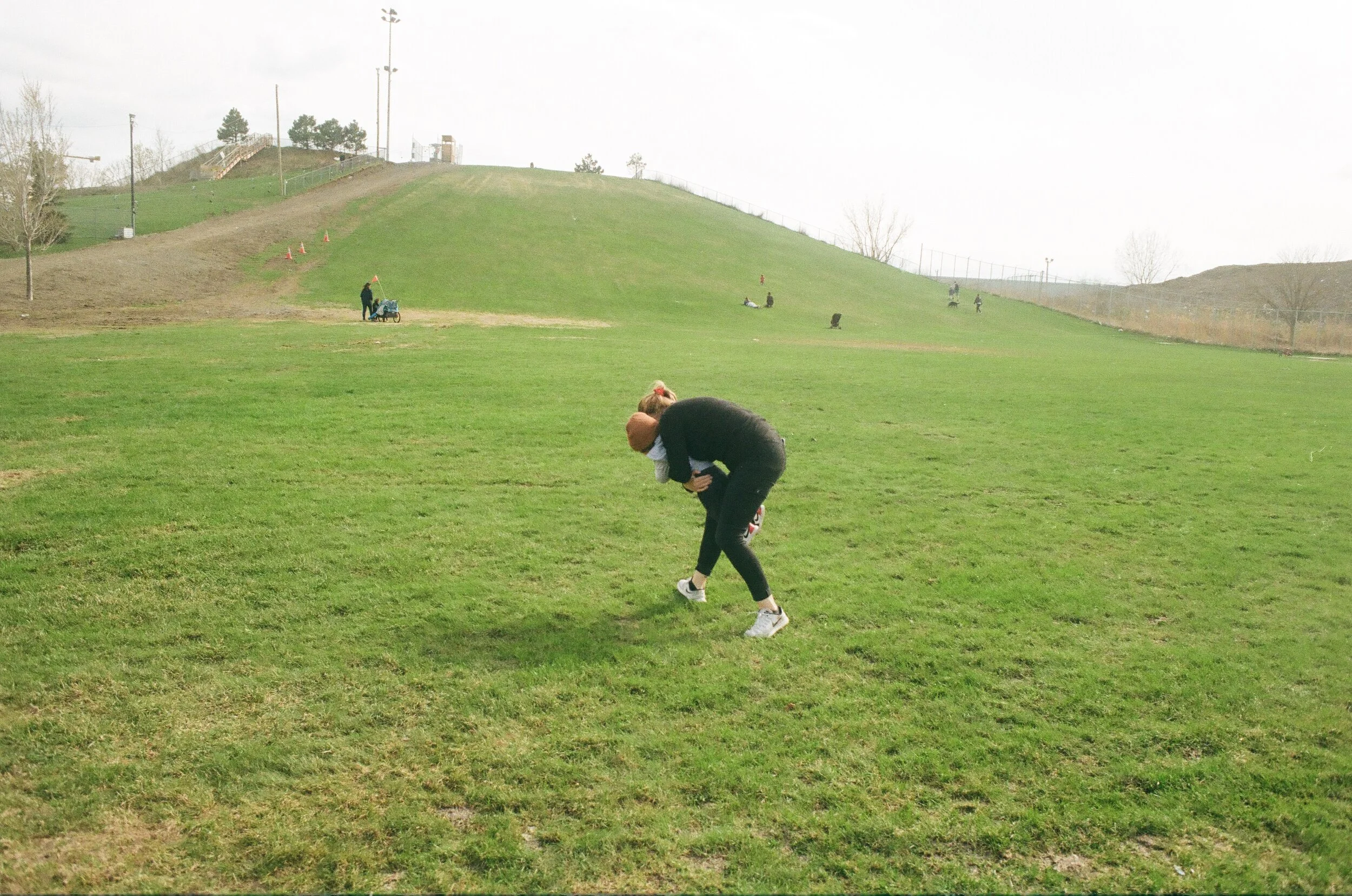 We walked around for quite some time, but through it all I was waiting for the right moment and looking for the perfect location to pop the question. I was simultaneously very anxious and excited on the inside. I had planned to ask her if I could take a portrait of her on my medium format film camera, and then take the ring out, say my piece, ask the big question, then take another photo of her as my fiancée. I wanted to wait until the light was just a little past golden hour. After eating a hot dog from a street vendor and stopping at a Starbucks to refuel our tired selves, we walked through the park in search of a washroom. While Mady lined up to go, Zay and I walked off to an empty little field beside the washrooms that had a strange twisting tree in the middle of it. The sun had about 10-15 minutes left before it set for good and Mady was still in line. I figured that this was as good a place as any to ask. It had a memorable tree, an amazing view of the buildings that surround the park, a beautiful pond directly in front of it, and best of all, it was quiet and not crowded. When she came out of the washroom I had my camera out and the ring in my pocket. Zay was in his stroller being a little fussy, but I needed him to stay in there for just a moment longer. I asked her if I could take her photo in the amazing light. I ended up underexposing it quite a bit, but thats just the nature of film photography I guess. The second photo is seen below, and I think it perfectly incapsulates what we were both feeling at that moment. Mady was clearly crying but smiling and laughing joyously. I’m forever grateful that she said yes, and I’m happy that we have this life changing memory captured on film.